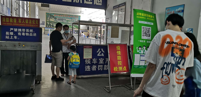 是七月上旬,位于紅旗廣場的湘運中心汽車站似乎還沒有恢復元氣,即使周末,乘客也是寥寥無幾,唯有候車室的大屏幕播放著疫情防控的宣傳。